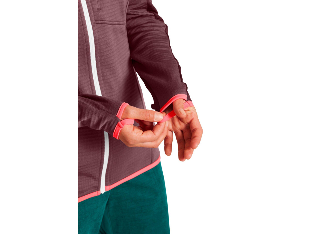 Extrémně lehká a prodyšná dámská vlněná fleece mikina s kapucí, která ti poskytne maximální pohodlí při dobrodružství na horských vrcholcích i v bezpečí domova. Dámská celorozepínací mikina s kapucí ORTOVOX FLEECE LIGHT GRID HOODED JACKET je dokonalý společník pro náročné túry v horách. Hladký a strečový materiál na vnější straně mikiny snáze odolává oděru, zatímco hebká podšívka z nejkvalitnější merino vlny je úžasně lehká, má termoregulační schopnosti a odvádí pot, takže zůstaneš v suchu za každých okolností.