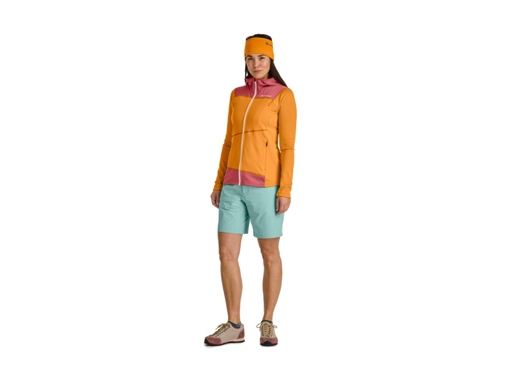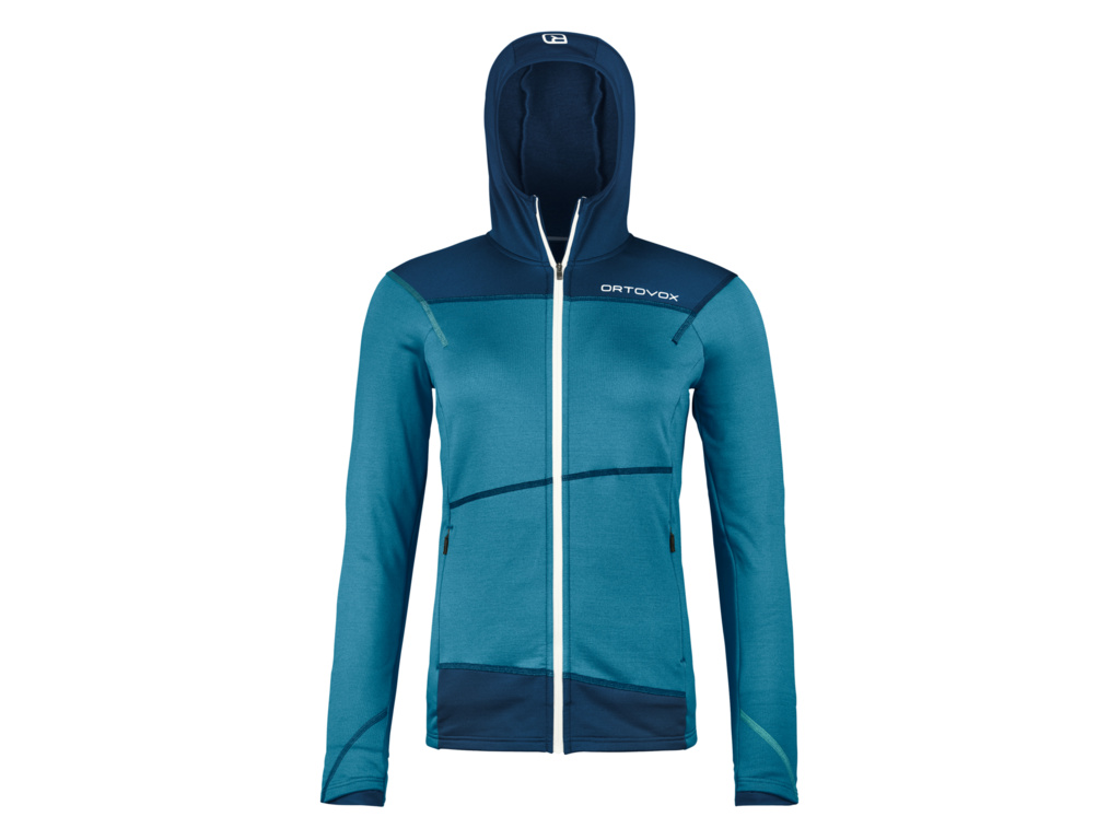 Extrémně lehká a prodyšná vlněná dámská fleece mikina s kapucí, která ti poskytne maximální pohodlí při dobrodružství na horských vrcholcích i v bezpečí domova. Dámská mikina s kapucí ORTOVOX FLEECE LIGHT HOODY W je dokonalý společník pro náročné i pohodové túry v horách. Hladký a strečový materiál na vnější straně mikiny snáze odolává oděru, zatímco hebká podšívka z nejkvalitnější merino vlny je úžasně lehká, má termoregulační schopnosti a odvádí pot, takže zůstaneš v suchu za každých okolností. Mikina má kapuci a velké kapsy, do kterých se snadno dostaneš i v lezeckém úvazku a s batohem na zádech.