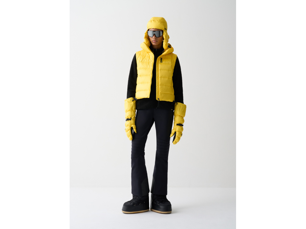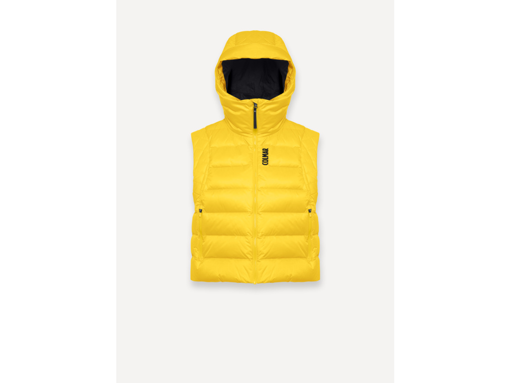 Stylová a funkční dámská zateplená vesta Colmar v nadýchaném designu je vyrobena z laminovaného lesklého nylonu, který je voděodolný a zároveň prodyšný. Díky vodoodpudivé péřové výplni a obepínající kapuci poskytuje vysoký tepelný komfort i v chladných a proměnlivých podmínkách. Vesta je ideální jako zateplující vrstva pod shellovou bundu nebo k samostatnému nošení při outdoorových aktivitách.