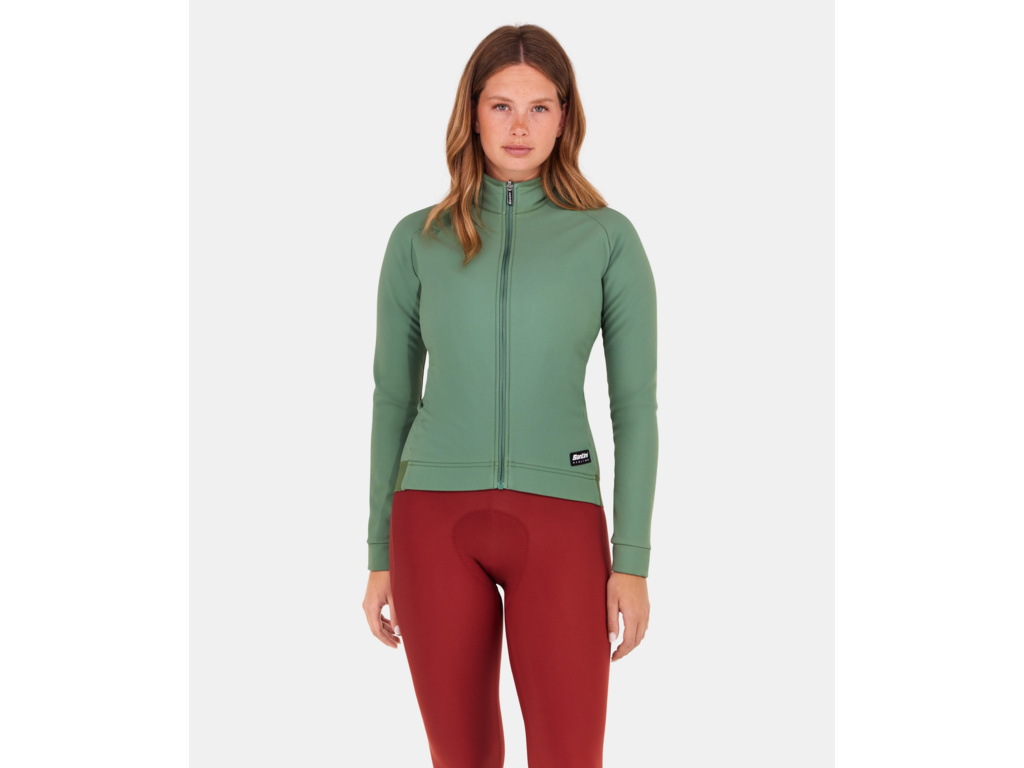 Zimní bunda SANTINI RTR Women s třívrstvou membránou a fleecovými panely chrání před větrem, chladem i vlhkostí, zatímco pohodlný střih a stylový jednobarevný vzhled zajišťují komfort i eleganci na zimních vyjížďkách.