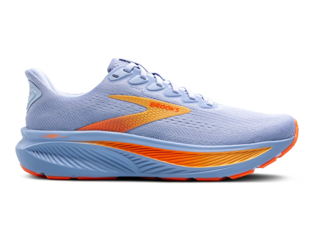 Silniční tréninková bota BROOKS Ghost 17. Ghost si vydobil svou pozici jedné z nejoblíbenějších bot na světě díky skvělému fitu svršku a dokonale vyváženému tlumení.