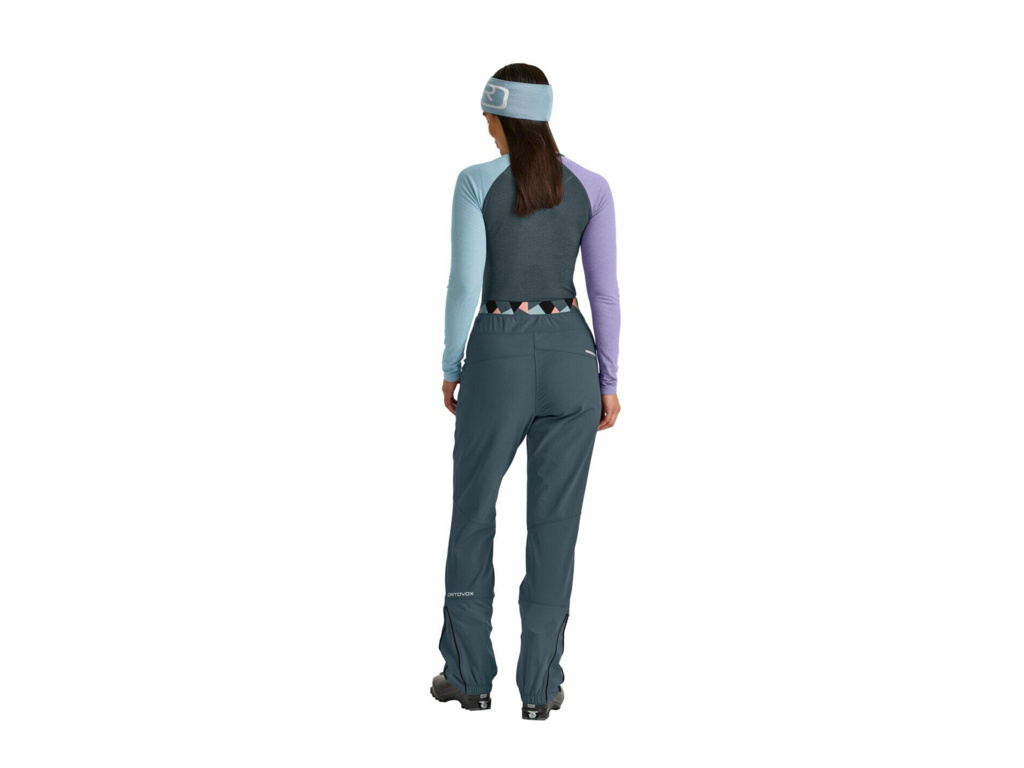 Nohavice kalhot ORTOVOX PUNTA BERRINO STRETCH PANTS W jsou skvěle přizpůsobeny pro kompatibilitu s lyžařskými botami. Pomocí zipu u kotníku je rozepneš a převlékneš přes lyžáky. Na oblast kotníků byl použitý velmi odolný softshell od značky Schoeller®, aby byly kalhoty odolné proti ostrým hranám lyží nebo maček.