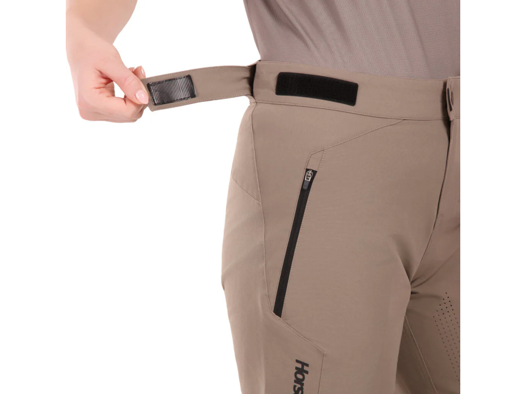 Dámské enduro kraťasy z rychleschnoucí strečové tkaniny, které neomezují v pohybu ani při jízdě v bikeparku. Ergonomický střih, nastavitelný pas, dvě kapsy na zip YKK a pohodlná délka nohavic zajišťují komfort po celý den na trailu.