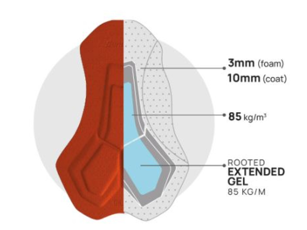 Tyto bib shorts jsou vyrobeny z kompaktního, elastického italského materiálu s technologií power compression, která poskytuje střední kompresi bez pocitu stažení. Materiál je odolný, zachovává si tvar i funkční vlastnosti i po mnoha jízdách. Šle z lehké mikro síťoviny zaručují vynikající ventilaci a rychlé schnutí. Nohavice zakončuje elastický lem s hladkým „raw-cut“ provedením a vnitřním silikonovým gripem pro perfektní držení.
