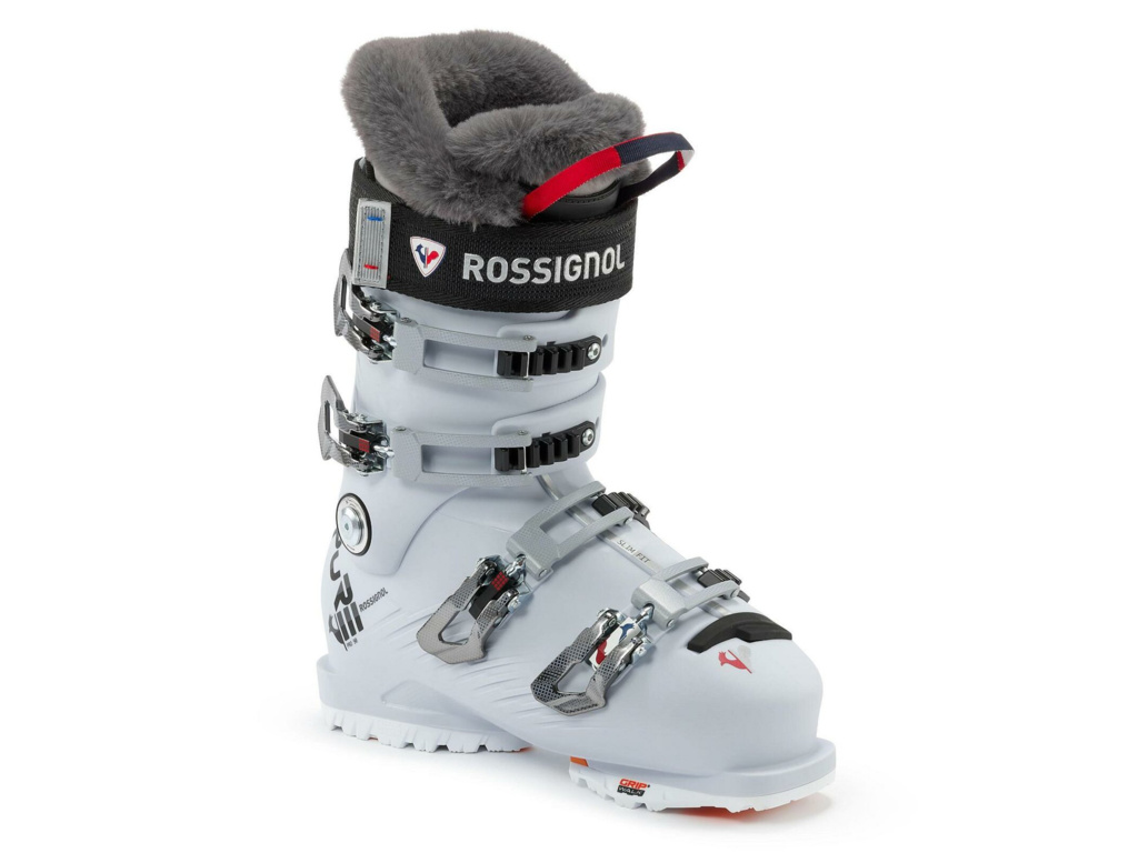 Rossignol Pure Pro 90 GW jsou dámské sjezdové boty navržené pro lyžařky, které požadují rovnováhu mezi výkonem, komfortem a přesným vedením lyží. Středně široké 100mm kopyto je ideální pro většinu ženských chodidel a poskytuje pevnou oporu bez nežádoucího tlaku.