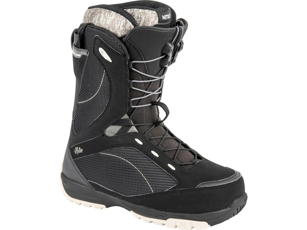 Rychlé a spolehlivé utažení umožňuje TLS Twin Lacing systém v kombinaci s Bail Out systémem, který usnadňuje povolení a vyzouvání během pár sekund. DLS utahování vnitřní boty spolu s Re/Lace zámkem umožní kdykoli jemně doladit utažení. O komfort a podporu klenby se stará dámská anatomicky tvarovaná stélka.S flex indexem 5/10 jsou Nitro Monarch ideální boty pro snowboardistky, které chtějí pohodlný a spolehlivý model pro celodenní ježdění.