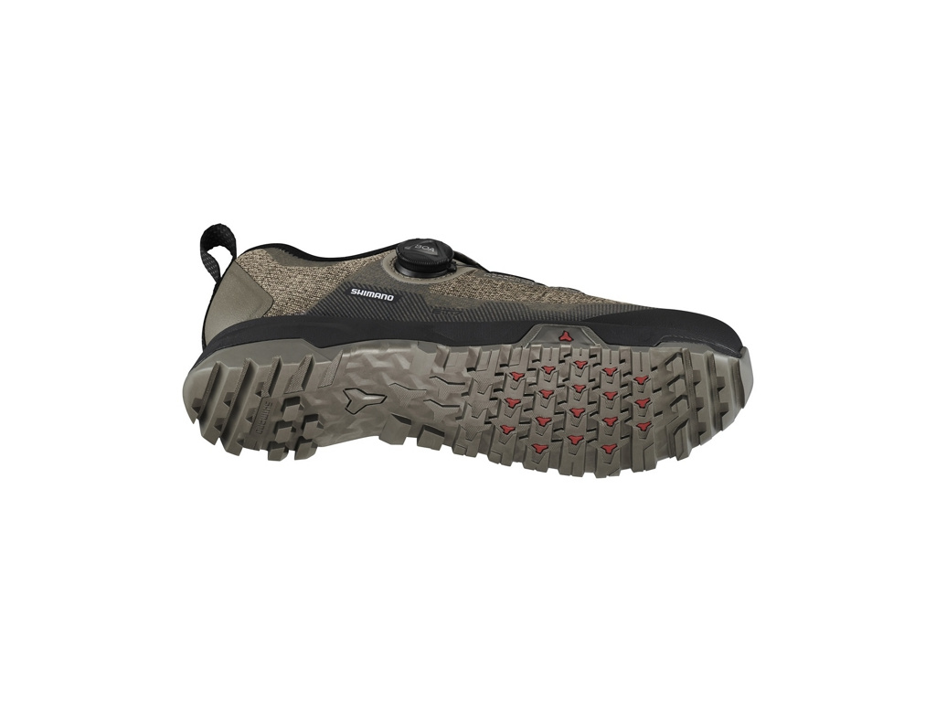 Gumová podešev byla navržená tak, aby se přizpůsobila širokému rozmezí platformových pedálů a díky speciálnímu vzorku je optimalizovaná pro bezpečný grip mimo sedlo - obzvláště ve vlhkých podmínkách.