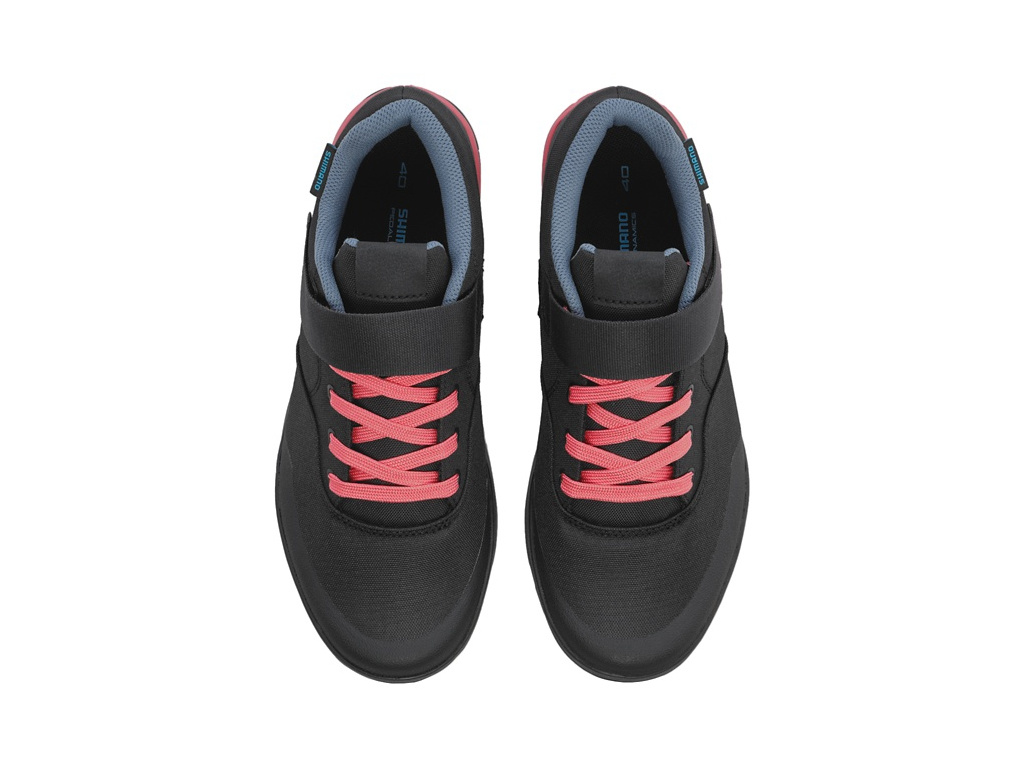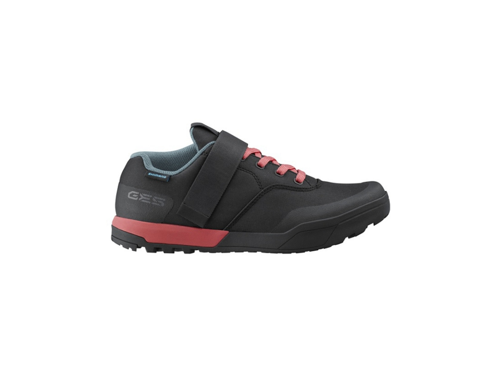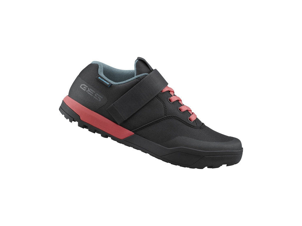Dámské tretry Shimano SH-GE500 kompatibilní s SPD pedály, určené na downhill, tkaničky s přezkou na suchý zip, volný ohyb kotníku, efektivní přenos síly do pedálů.