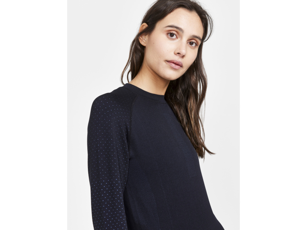 Termo tričko dámské má kulatý límec a dlouhý rukáv. Rukávy a spodní lem jsou ukončeny manžetami. Raglánový střih rukávů podporuje Váš přirozený pohyb. Termo oblečení pro dámy má ploché švy, které brání podráždění pokožky. Bezešvé torzo termotrička zajistí extra pohodlí a komfort během nošení. Termo prádlo Craft bylo vyrobeno iz recyklovaných materiálů.