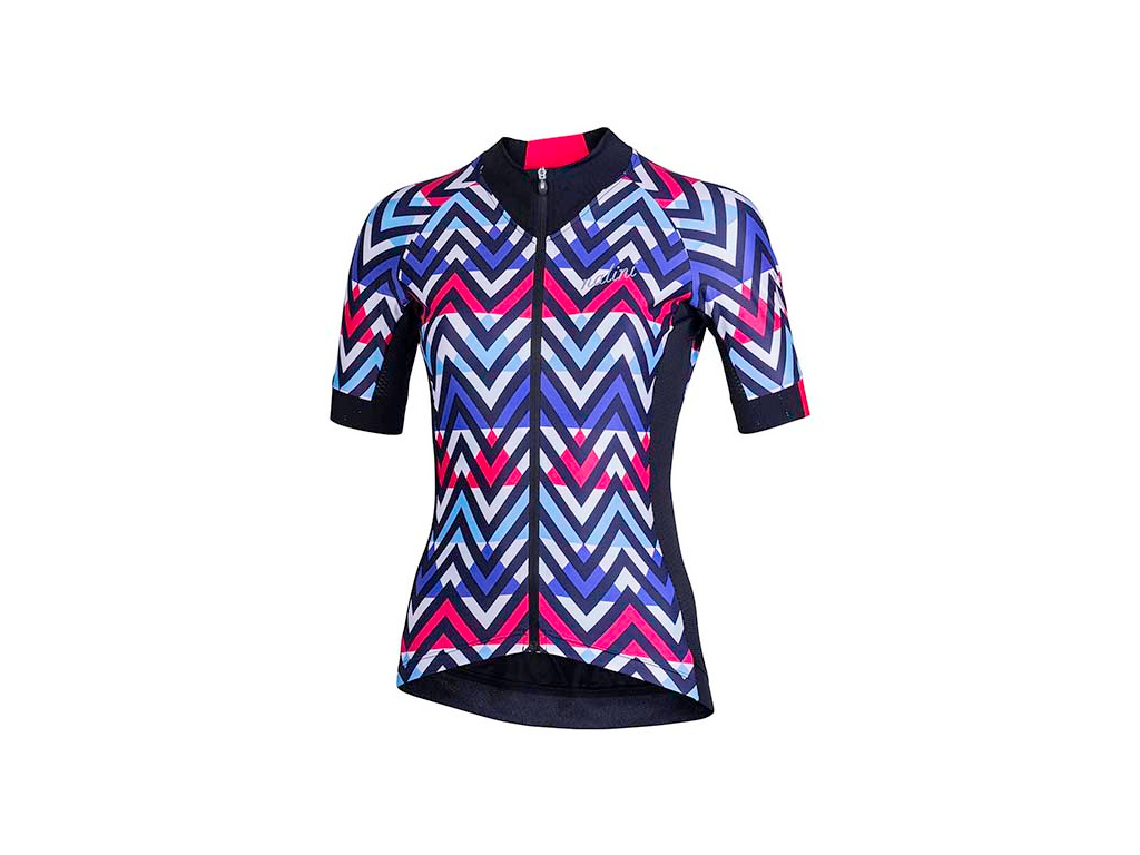 Dámský fashion dres v italském designu. Otevřená struktura látky zad pro lepší ventilaci, síťové panely pod pazí, elastické rukávy a silikonový lem pasu. 3 zadní kapsy + 1 voděodolná kapsa se zipem.