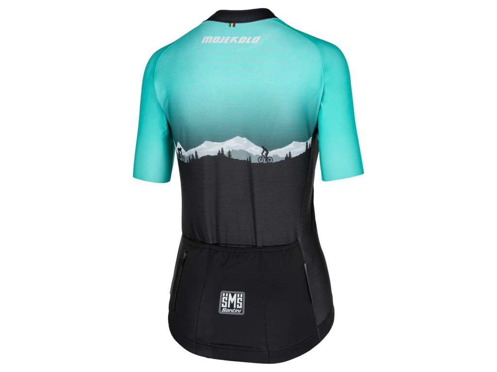 Dámský letní dres SANTINI Tono v designu Mojekolo, s krátkými rukávy a zipem po celé jeho délce. Díky lehké tkanině zůstává dres prodyšný a pohodlný, přesto se SLIM FIT střihem podpoří váš výkon.