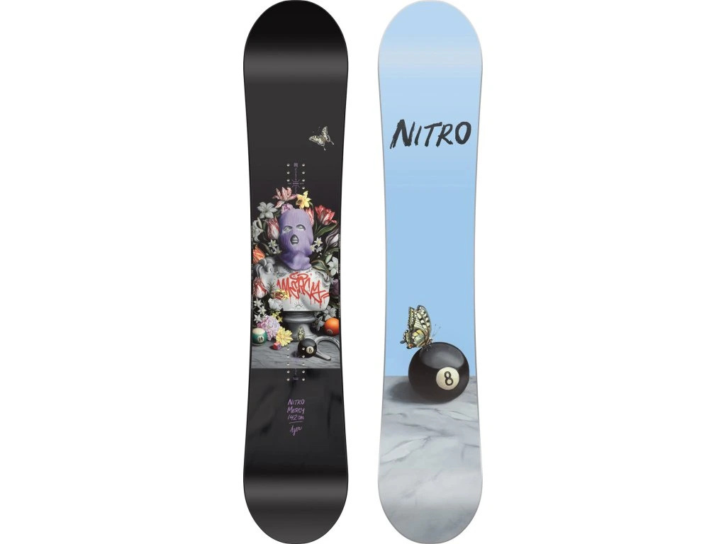 Nitro Mercy Women’s je nejživější dámský freestyle snowboard v kolekci – navržený pro riderky, které milují park, ale chtějí si užít i celý den na sjezdovce bez únavy. Nabízí perfektní ovladatelnost, plynulou jízdu a jistotu při dopadech i odrazech.