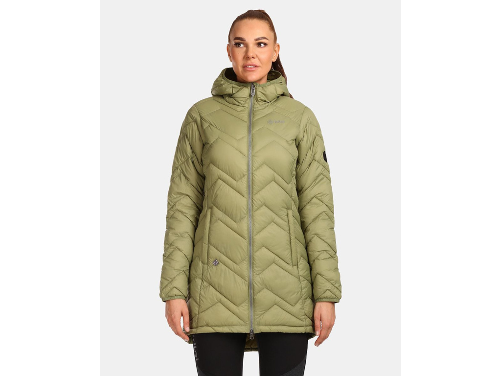 Kilpi LEILA-W je dámský zateplený zimní kabát v délce nad kolena. Tvarovaný pas zdůrazňuje ženské křivky. Kapuce je dostatečně velká, dá se nasadit pohodlně na čepice a nadstavit suchým zipem. Kabát má dvě zipové kapsy. Vnější materiál je ošetřen voděodpudivou úpravou DWR a vnitřní syntetická výplň je velmi lehká a hřejivá.