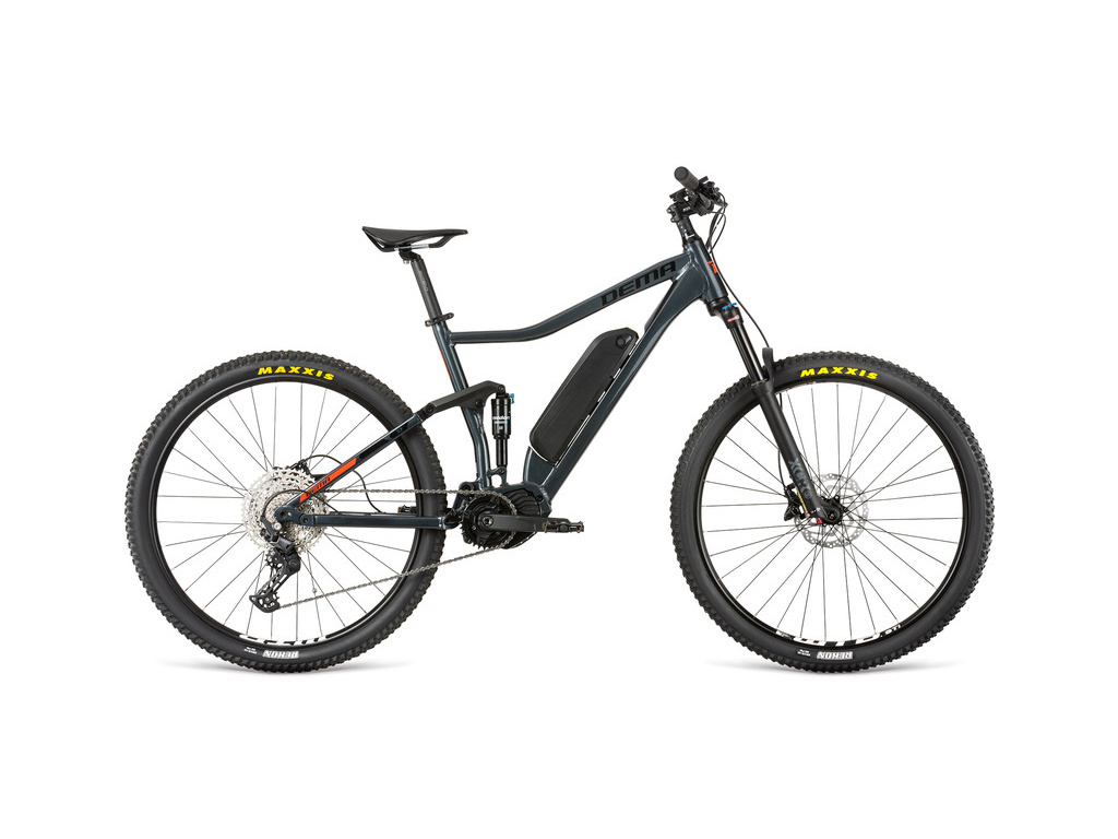 DEMA Flow je 29palcové celoodpružené elektrokolo s předním zdvihem 130 mm, které pohání motor Bafang M510 s točivým momentem 95 Nm a baterie o kapacitě 630 Wh. Tenhle stroj si zamilují bikeři, kteří holdují sportovnímu ježdění po cyklostezkách a středně těžkých trailech. Spolehnout se můžete na komponenty odpružení SR SUNTOUR, brzdy Shimano MT401 a 10rychlostní řazení Shimano Deore. Veškeré jízdní údaje máte neustále před sebou na displeji, samozřejmostí je teleskopická sedlovka.