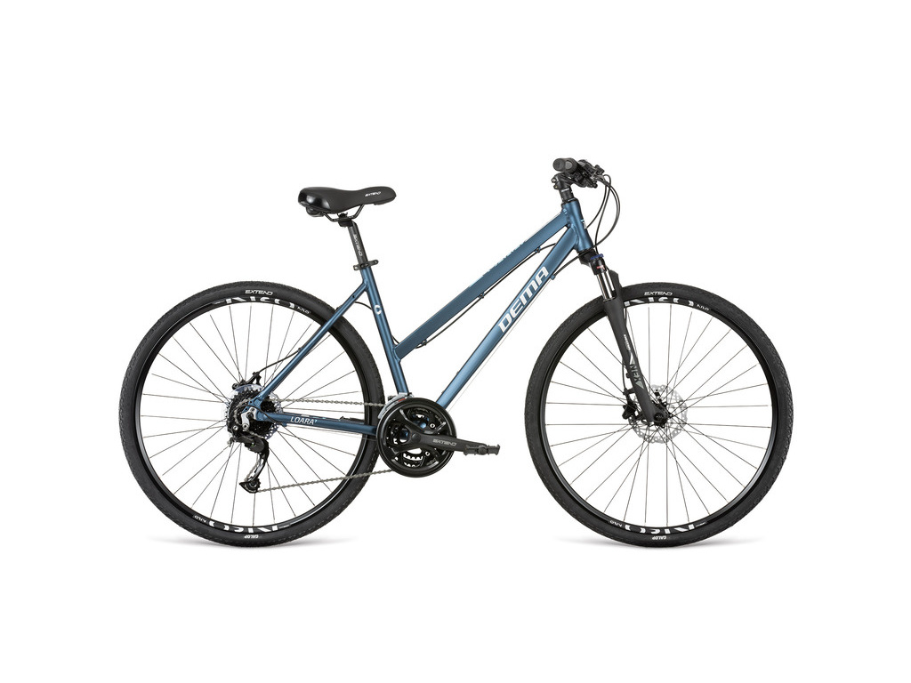 DEMA Loara 7 je dámské crossové kolo, které se nezalkne žádné cyklostezky, cesty do práce ani po městě. Pevný rám DEMA LOARA 7 disc je osazen odpruženou vidlicí SR SUNTOUR pro vaše maximální pohodlí, řazením SHIMANO HG200 s 3x9 převody a spolehlivými brzdami SHIMANO MT200. Snížená horní rámová trubka vám usnadní pohodlný a bezpečný nástup i výstup. Toto kolo s promyšlenou výbavou se stane vaším každodenním parťákem.