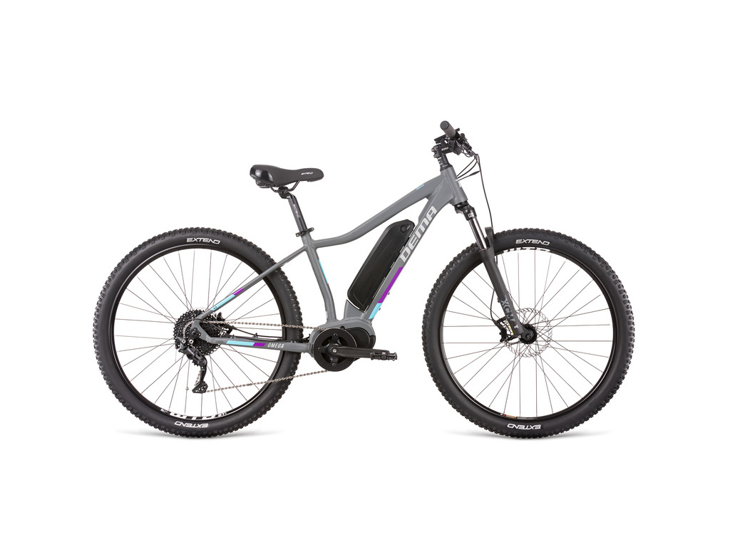 Extrémně pohodlné a dostupné dámské horské elektrokolo. DEMA Omega s pohonem Bafang M400 a baterií o kapacitě 630 Wh.