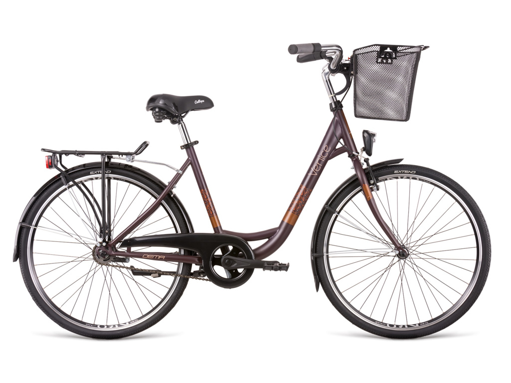 DEMA Venice je dámské městské kolo s parádní výbavou a úpravou rámu pro váš pohodlný výstup i nástup. Kromě 3rychlostního řazení SHIMANO Nexus, které zajišťuje hladký chod jízdy, a spolehlivých brzd EXTEND, zaručeně oceníte světla, zadní stojan, nosič nebo košík na řídítka. S touto skvělou výbavou můžete kolo využívat jako plnohodnotnou, a hlavně ekologickou, náhradu městského dopravního prostředku.