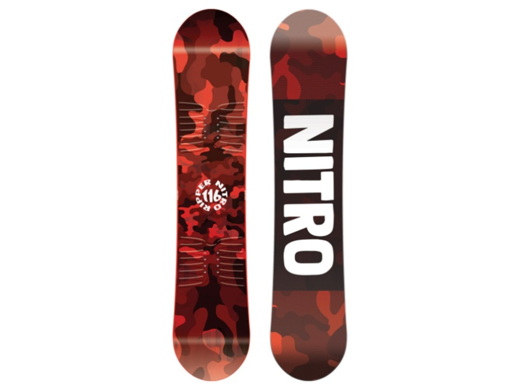 Nitro Ripper je lehký, měkký a přátelský snowboard pro děti a juniory, ideální pro začátečníky. Flatout Rocker usnadňuje zatáčení, měkká flexe a odolné dřevěné jádro dávají prknu hravý charakter a umožňují rychlý pokrok.