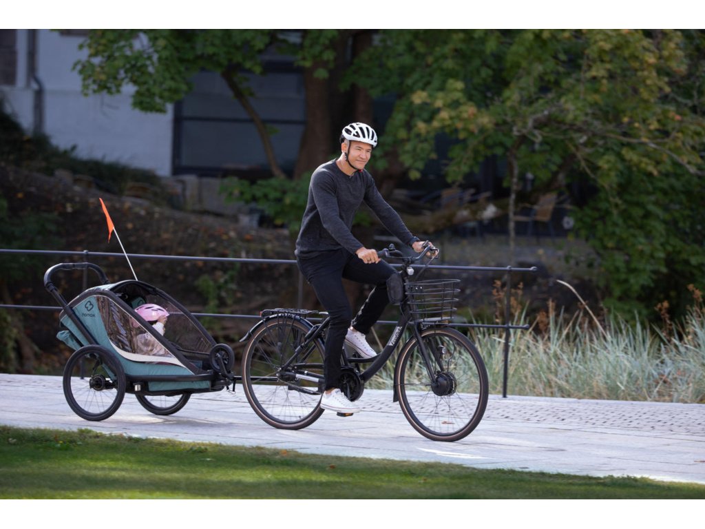 Dvoumístný dětský vozík HAMAX Cocoon je lehký a pohodlný cyklistický vozík pro aktivní rodiny. Vyniká pevnou konstrukcí, promyšlenou ergonomií a snadným ovládáním, díky čemuž zvládne městské cyklojízdy i delší cyklo výlety. Velká okna nabízejí skvělý výhled, větrací panely zlepšují cirkulaci vzduchu a praktické prvky usnadňují každodenní používání.