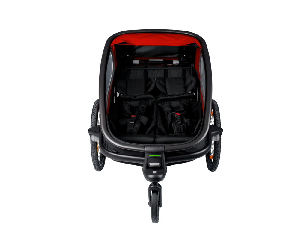 Dvoumístný dětský vozík HAMAX Outback je odolný a pohodlný cyklistický vozík pro aktivní rodiny. Vyniká pevnou konstrukcí, promyšlenou ergonomií a snadným ovládáním, díky čemuž zvládne městské cyklojízdy i delší výlety po zpevněných cestách. Velká okna nabízejí skvělý výhled, větrací panely zlepšují cirkulaci vzduchu a praktické prvky usnadňují každodenní používání.