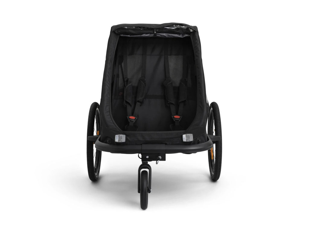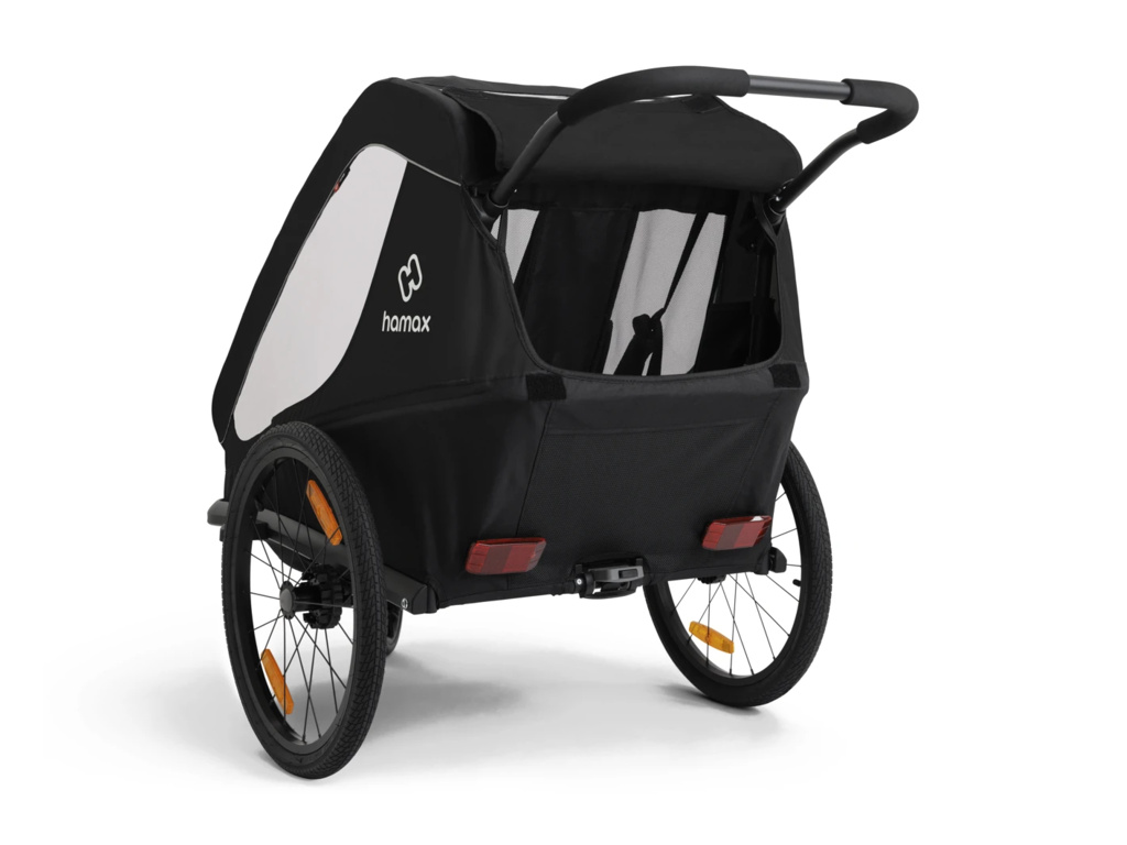 Traveller je lehký a praktický dvoumístný vozík za kolo, který lze snadno přeměnit na kočárek.