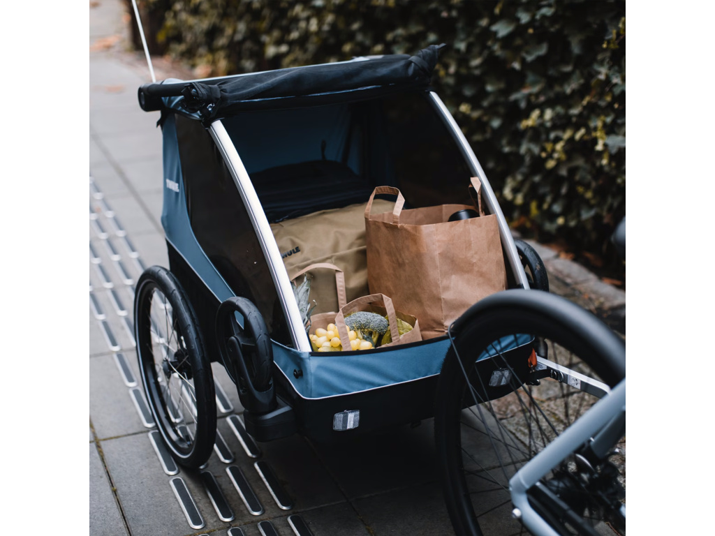 Thule Courier je všestranný vozík za kolo, který využije každá rodina. Odolný vozík je díky prostornému kokpitu pro dvě děti ideální na dlouhé rodinné vyjížďky i rychlé výlety do města. Je skvělým prostředkem pro dojíždění i odvoz dětí do školky. A jakmile dorazíte na místo, snadno vozík přeměníte na kočárek s kompaktními koly a plně nastavitelnou rukojetí pro rodiče, což usnadňuje manévrování na přelidněných místech. Tento komfortní vozík za kolo lze navíc přeměnit na vozík pro přepravu nákladu a máte i další možnosti.
