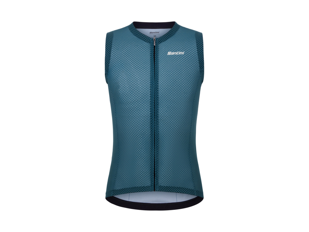 Dres bez rukávů SANTINI Opal s přiléhavým střihem, síťovaným materiálem a UV ochranou je ideální volbou pro horké letní jízdy – maximální ventilace, komfort a čistý sportovní design.