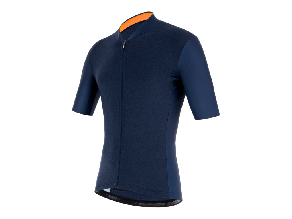 SANTINI Colore Jersey je pánský cyklistický dres vyrobený z kombinace lehkých a kvalitních tkanin, které nabízejí extrémní pohodlí a stylový vzhled. Model má prodloužené rukávy a nízký límec pro získání aerodynamického SlimFit střihu, elastický vnitřní silikonový lem na spodní části, aby nedošlo k vyhrnování a dres zůstal na svém místě a reflexní detaily pro větší bezpečnost. Melanžová tkanina podporuje prodyšnost, proto je dres ideální na jarní a letní tréninky a cyklovýlety.