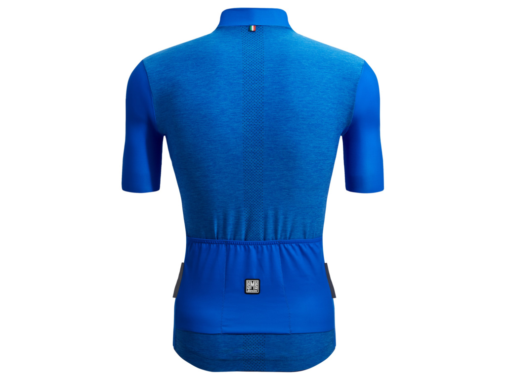 Nejprodávanější pánský dres z kolekce SANTINI – SANTINI Puro – je vyroben z kombinace lehkých a výkonných tkanin, které poskytují extrémní pohodlí a prodyšnost. Speciální kombinace mikrovlákna ultralehkých rukávů a kartáčované melanžové tkaniny na těle zajišťuje super čistý a elegantní vzhled. Úzký střih dresu s prodlouženými rukávy surového střihu mu dodává moderní vzhled, zatímco vnitřní silikonový úchyt v pase udržuje dres pevně na svém místě za každých okolností. Francouzský límec vám poskytne pohodlí a volnost pohybu a díky obrácenému plochému zipu si přizpůsobíte ventilaci. Navíc si do trojité zadní kapsy můžete uložit všechny nezbytnosti a o vaši bezpečnost se postarají reflexní tečky na zádech, které zvyšují viditelnost.