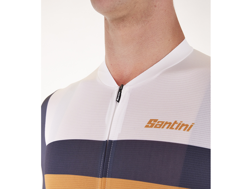 Dres SANTINI Eco Sleek New Bengal je ideální volbou pro závodní sezónu. Tento aerodynamický dres je vyroben z ekologických recyklovaných materiálů, pocházejících z PET a odpadních přízí, což přispívá k udržitelnější budoucnosti. Dres poskytuje svěží pocit na kůži a nosí ho i profesionálové. Elegantní střih se surově střiženými rukávy a tvarovanými silikonovými návleky na manžetách zajišťuje lepší aerodynamický výkon. Dlouhý krytý zip poskytuje termoregulaci v nejteplejších dnech. Na zadní straně najdete trojitou kapsu, do které si můžete uložit to nejnutnější.