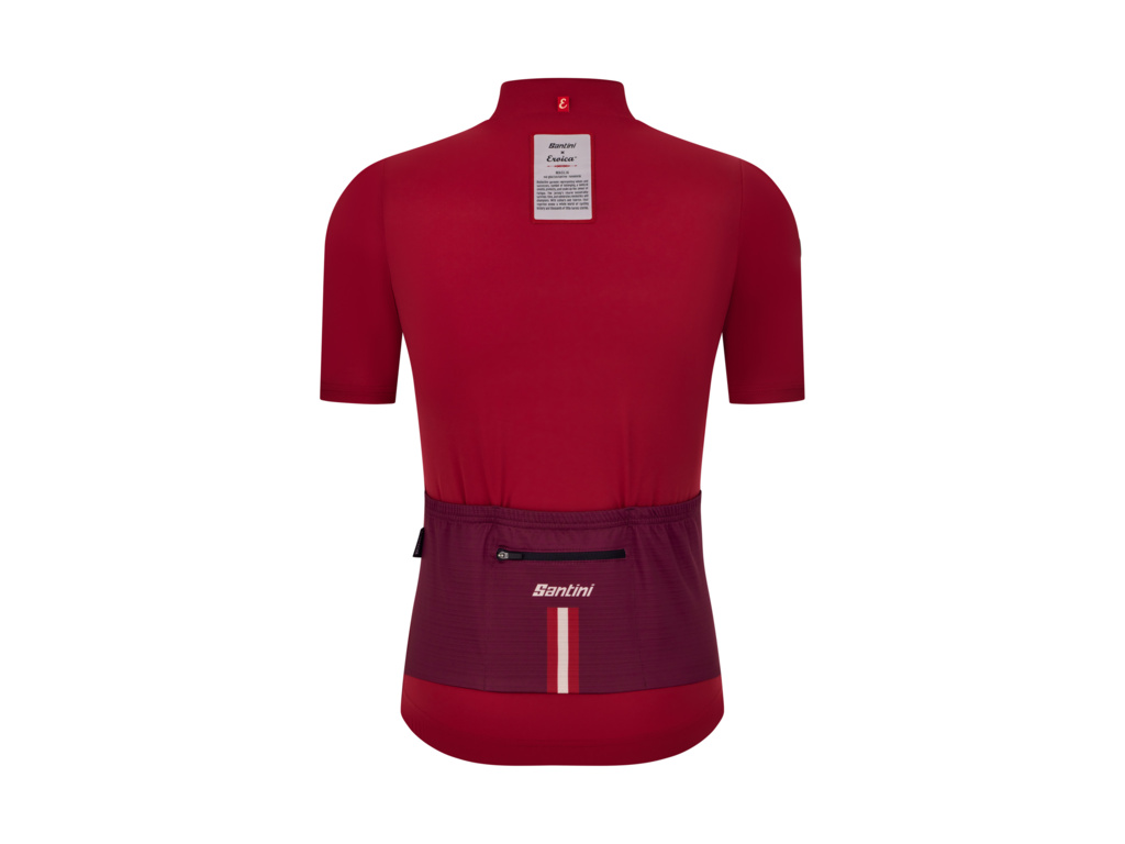 Dres SANTINI Eroica Orcia je navržen tak, aby oslavoval skutečnou podstatu historické cyklistiky, aniž by slevoval z nároků na současnou funkčnost. Je vyroben z vysoce prodyšných technických tkanin, které efektivně odvádějí vlhkost a udržují pocit svěžesti i při náročném stoupání v horkém počasí. Střih dresu je navržen tak, aby přirozeně kopíroval křivky těla, ale zároveň neškrtil, což zajišťuje pohodlí i po několika hodinách v sedle. Spodní lem je opatřen elastickým pásem se silikonovým gripem, který drží dres spolehlivě na místě.
