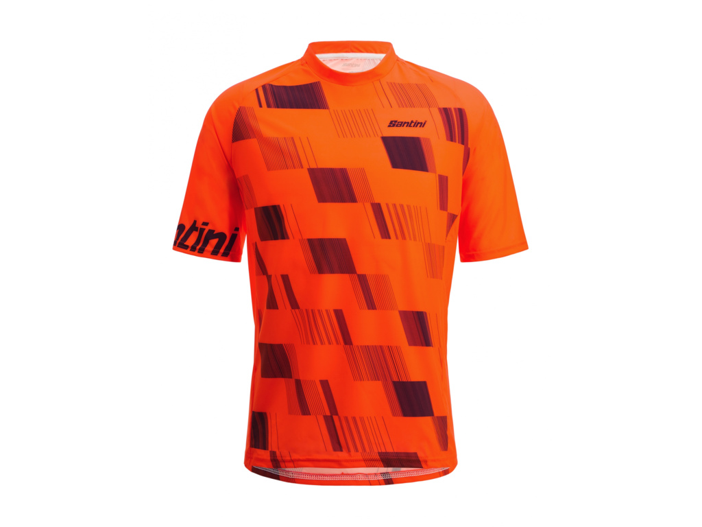 Pásnký dres SANTINI Fibra MTB s posádkovým výstřihem, prodlouženými zády a oděruvzdornou člunkovou tkaninou. Ideální pro pohodlí a odolnost během outdoorových aktivit.