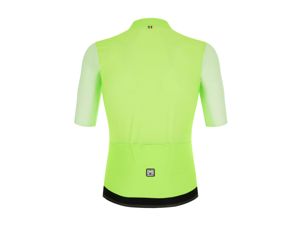Aerodynamický výkonnostní dres v super fit střihu pro zacílení na vaši rychlost a pohodlí? To je model SANTINI Redux Vigor z lehké, rychleschnoucí a odolné tkaniny vůči UV záření s elastickým silikonový lemem v pase a tepelně svařovanými manžetami ru