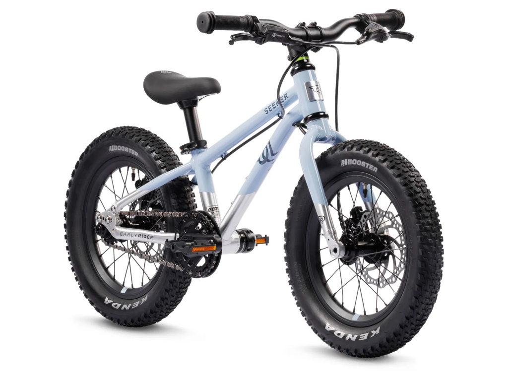 Špičkové osazení doplňují 16" zapletená kola na průmyslových ložiscích s pevnými osami, což zvyšuje celkovou tuhost a odolnost stroje. Široké pláště Kenda Booster 2.25" se pak postarají o perfektní trakci a pohodlí na kořenech i v blátě. Seeker 16 je zkrátka ideálním parťákem pro první opravdové výzvy na trailech.