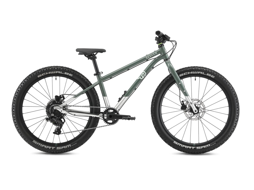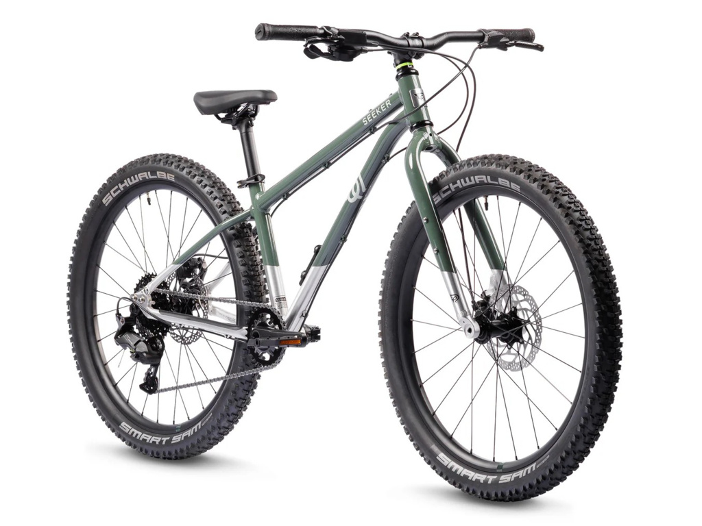 Kola s utěsněnými ložisky a pevnými osami zajišťují maximální tuhost a odolnost výpletů. Široké pláště Schwalbe Smart Sam 2.35" poskytují vynikající trakci a tlumení, což dává jezdci sebevědomí na kořenech i v blátě. Seeker 24 je tak ideálním parťákem pro ambiciózní bikery, kteří chtějí objevovat nové traily bez limitů.