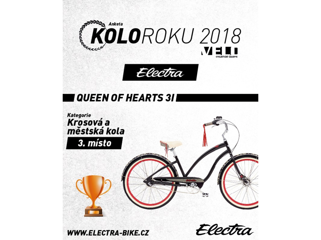 Electra Queen of Hearts 3i je nádherný dámský cruiser, který zaujme na první pohled. Rám kola je vyroben z lehkého hliníku a nabízí unikátní pozici za řídítky díky patentované Flat Foot technologii. Queen of Hearts 3i je osazen komponenty Electra a ř