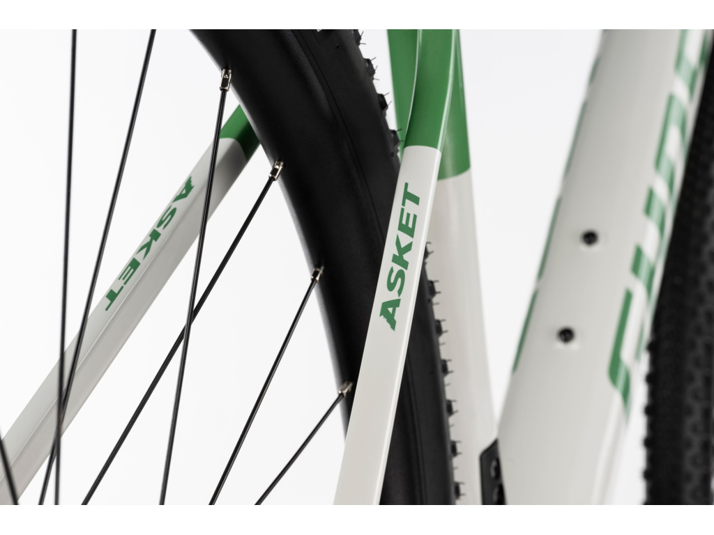 Tento štěrkolet se pyšní progresivní geometrií, která zahrnuje hlavový úhel 69,5° a 435mm řetězové vzpěry, což zajišťuje ideální kombinaci obratnosti a jistoty v technickém terénu. Karbonový rám poskytuje vysokou tuhost při nízké hmotnosti, díky čemuž je Asket CF ideální jak pro dlouhé výpravy, tak pro rychlé gravel vyjížďky.