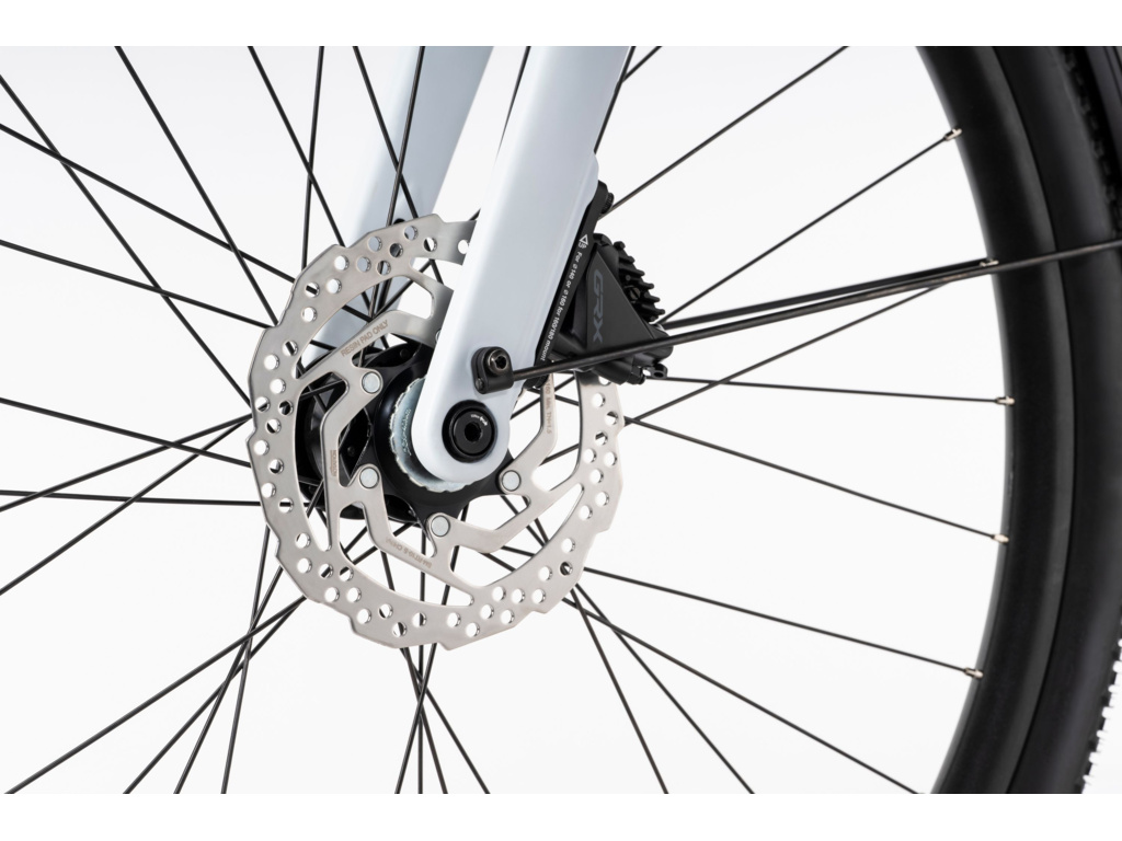 Čistý a technický design – jedno-převodník a minimalistický rám s decentní grafikou zvýrazňují funkční charakter kola. Kombinace lesklých povrchů a jemných detailů vytváří elegantní, nadčasový vzhled, který sedí k celkové filozofii kola: jednoduchost, kvalita a výkon bez zbytečností.