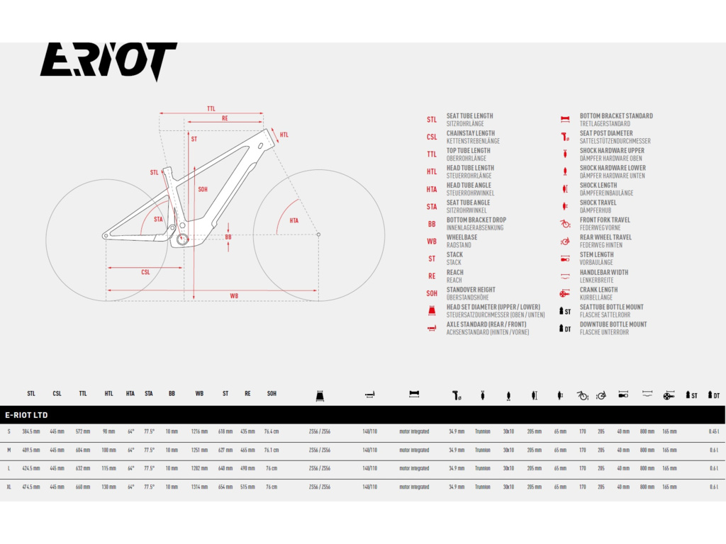 - E-RIOT LTD: exkluzivní verze s prvotřídním vybavením jako jsou komponenty SRAM/RockShox, DT Swiss karbonové ráfky, doplňky Truvativ, 220mm kotouče vpředu i vzadu a bezdušové pláště včetně PTN vložek do plášťů