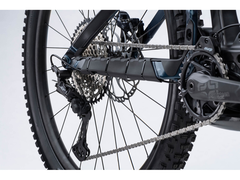 · Dokonale skrytá, avšak snadno přístupná kabeláž, která vede pod ochranným krytem dolní rámové trubky a řetězové vzpěry