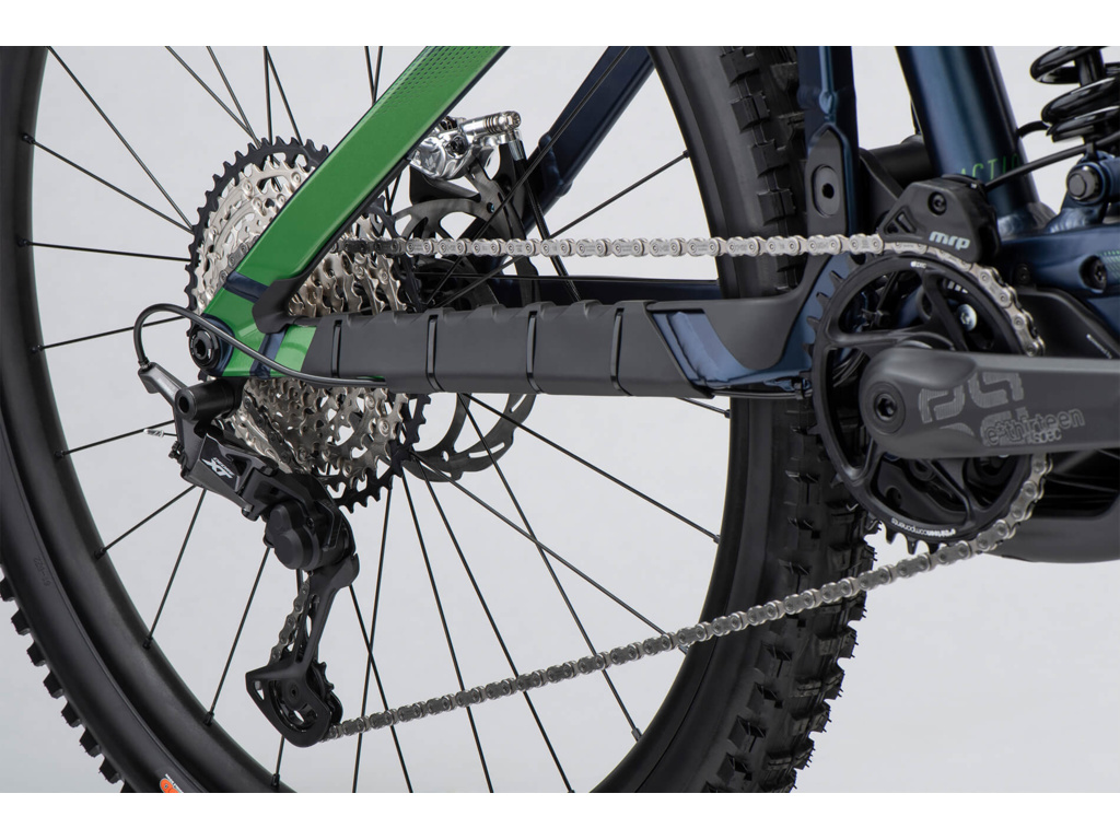 · Dokonale skrytá, avšak snadno přístupná kabeláž, která vede pod ochranným krytem dolní rámové trubky a řetězové vzpěry