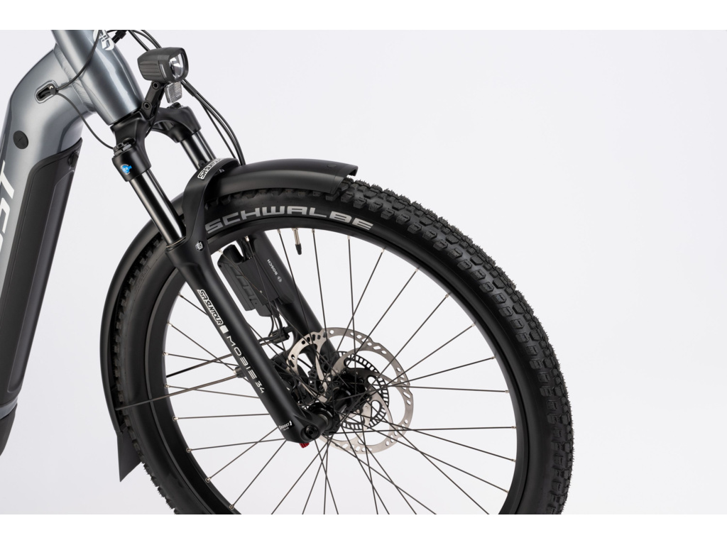 Ať už jedete po šotolinových cestách, nebo bojujete na drsných lesních stezkách, tento hardtail vám nabídne maximální pohodlí a bezpečí se sofistikovanou geometrií. V nabídce jsou jak rámy s nízkým nástupem, tak i plně vybavené modely EQ s blatníky, stojanem, světly a nosičem. Nejvyšší modely nabízí funkci ABS anebo řemenový pohon s automatickou převodovkou v zadním náboji. Velikosti S jsou osazeny 27,5“ koly pro větší jistotu a bezpečí jezdců s menší postavou. Díky výkonnému motoru Bosch 5. generace a baterii s kapacitou 800 Wh (modely PRO a ADVANCED) budete mít vždy dostatek energie pro každé stoupání.
