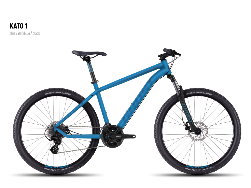 Výborně osazený základní model horského kola na 27,5 palcových kolech nese označení Ghost Kato 1. Výbavu tvoří lehký hliníkový rám s odpruženou vidlicí RST s uzamykáním, komponenty Shimano s 3x8 převody a hydraulické kotoučové brzdy.