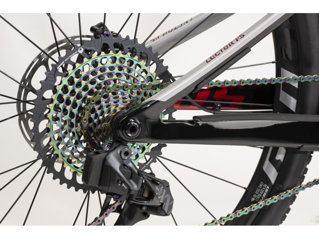 GHOST Lector FS World Cup je celoodpružená mašina s nejnabitějším osazením pro XC výzvy a maratonské použití. Detailně zpracovaný závodní celokarbonový rám s geometrií SUPERFIT® zajišťují ideální posed každému jezdci. S komponenty odpružení Rock Shox SID dosahuje model 120 mm (u velikosti XS, S 100 mm) předního i zadního zdvihu, díky kterým vyžehlíte i ty nejnáročnější nástrahy moderních XC tratí. Dlouholetý vývoj ve spolupráci s továrním XC závodním týmem přinesl systém odpružení Traction Link®, který vyniká svou citlivostí a minimalizací ztrát při záběru do pedálů. Osa zadního náboje se při aktivaci zadního tlumiče pohybuje po kolmici vůči terénu (nikoliv po kružnici) a efektivně tak překonává koberec z kořenů či balvanů. Model se chlubí zamykáním obou tlumičů z řídítek, vnitřním vedením kabeláže a plně integrovanou teleskopickou sedlovkou Eightpins. Špičkové řazení SRAM Eagle pro hladký chod jízdy a spolehlivé brzdy SRAM Level Ultimate jsou samozřejmostí.