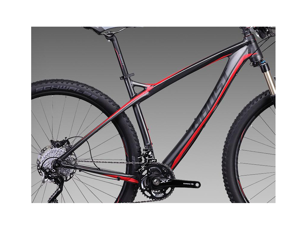 Scandiový 29" MTB rám Ghost HTX se závodní geometrií, vyrobený ze zeslabovaného hliníku s příměsí scandia.