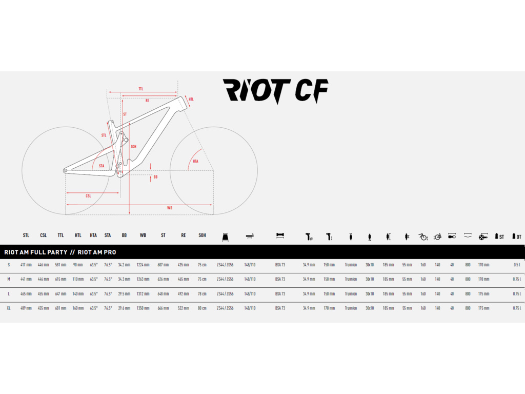 Nový RIOT CF v karbonovém kabátě! Progresivní geometrie s delším rozvorem a nízkým hlavovým úhlem posouvá vývoj o kus dopředu a dostává se tam, kam ostatní výrobci dospějí o několik let později. Celo-karbonový rám je od základu nový a je v nabídce ve dvou kategoriích: ALL MOUNTAIN a TRAIL. V nabídce je také Enduro verze, ale pouze na hliníkovém rámu. Zcela nově vyvinuté přepákování tlumiče zadní stavby s názvem Traction Link® (virtual pivot) přináší tuny zábavy a hlavně kontroly. Osa zadního náboje se při aktivaci zadního tlumiče pohybuje po kolmici vůči terénu (nikoliv po kružnici) a ochotně tak překonává koberec z kořenů či balvanů. Vzpřímená sedlovka, položená vidlice a delší zadní vzpěry jsou hlavními vlastnostmi nejmodernější geometrie, která stojí na GHOSTem vyvinutém algoritmu SUPERFIT®. Ten udává optimální délky jednotlivých rámových trubek v závislosti na výšce jezdce. Nenápadná a plně integrovaná teleskopická sedlovka Eightpins® hýčká jezdce bezkonkurenčním velkým zdvihem a hladkým chodem. Dalším plusem jsou plášťové inserty PTN® (pouze u Full Party verze), které minimalizují poškození ráfku a umožňují nižší tlaky, a tak i lepší přilnavost v náročných situacích. Navíc, jako jediné na trhu, zaručí pohodový dojezd i při defektu. Tak naskočte a vyrazte se bavit. …EXPECT RIOT!