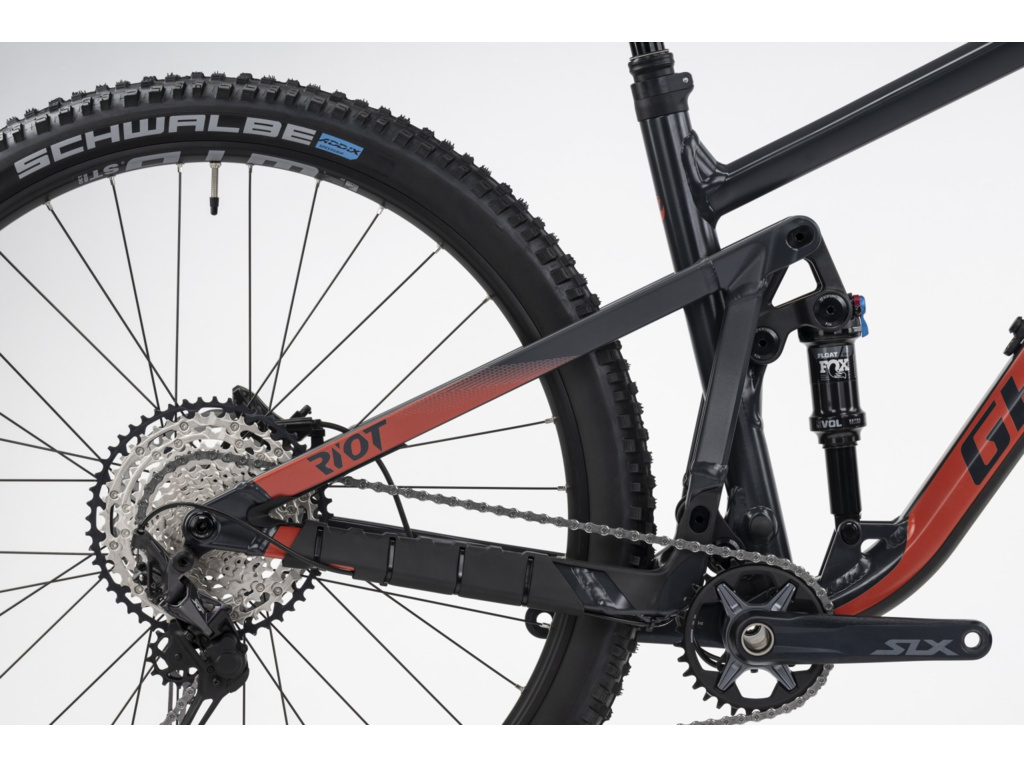 GHOST Riot Trail Essential je celoodpružený trailový bike postavený na 29palcových kolech a hliníkovém rámu s komponenty odpružení FOX, které zajišťují 140 mm předního i zadního zdvihu. Přepákování tlumiče zadní stavby s názvem Traction Link® přináší tuny zábavy, kontroly a potřebné tuhosti ve sjezdových pasážích a neomezí vás ani při cestách nahoru. Vzpřímená sedlovka, položená vidlice a delší zadní vzpěry jsou hlavními vlastnostmi nejmodernější geometrie, která stojí na GHOSTem vyvinutém algoritmu SUPERFIT®. Ten udává optimální délky jednotlivých rámových trubek v závislosti na výšce jezdce. Přesné řazení obstarává SHIMANO SLX s 1x12 převody a precizní brzdný účinek zajišťují čtyřpístkové brzdy SHIMANO BR-MT520.