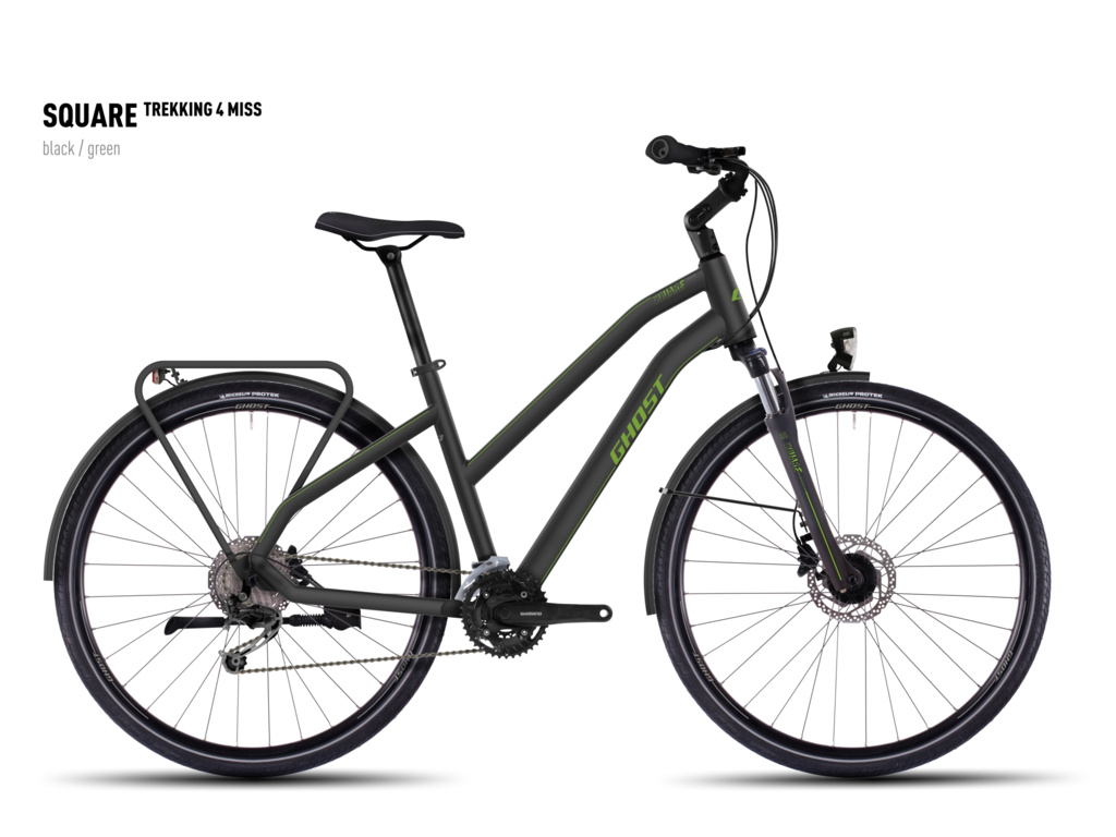 Oblíbená řada trekingových kol Ghost se pro rok 2016 také dočkala proměny. Square Trekking 4 je osazen odpruženou vidlicí s lockoutem a spolehlivými komponenty Shimano 3x9 s hydraulickými brzdami. Nechybí kompletní výbava, jako jsou blatníky, kvalitní osvětlení, zadní nosič a stojan.