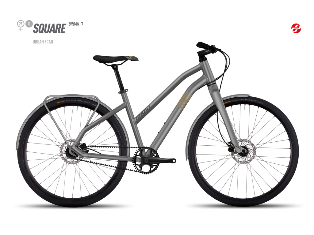 Square Urban je řada stylových městských kol s lehkou hliníkovou přední vidlicí a kompletním vybavením, které potřebujete pro bezpečný provoz po městě. Na hladkých pláštích Continetnal Sport Contact II SL se budete po cyklostezkách a parcích prohánět jako vítr.