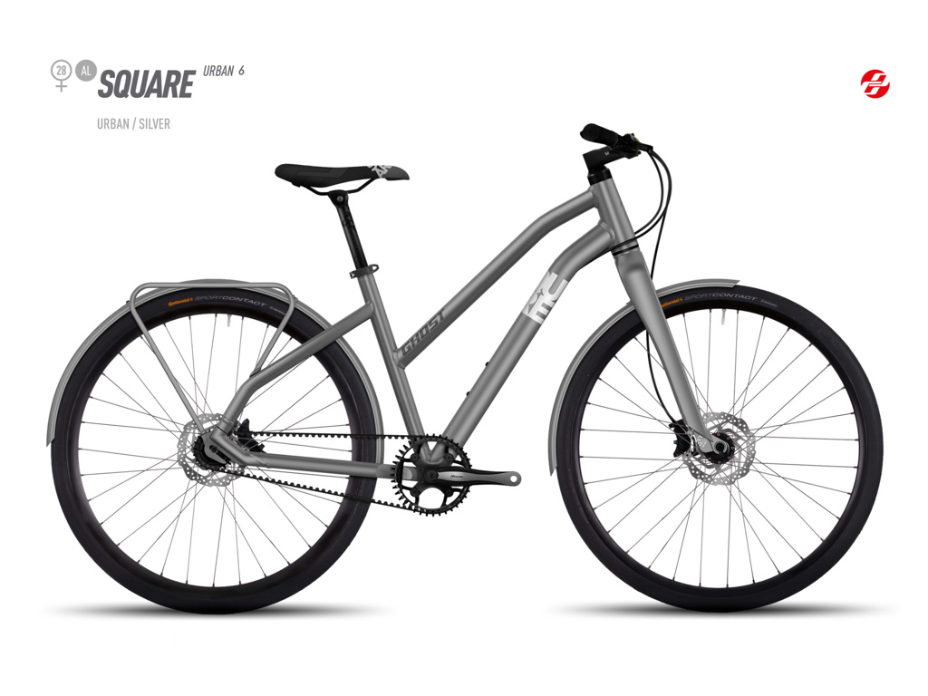 Square Urban je řada stylových městských kol s lehkou hliníkovou přední vidlicí a kompletním vybavením, které potřebujete pro bezpečný provoz po městě. Na hladkých pláštích Continetnal Sport Contact II SL se budete po cyklostezkách a parcích prohánět jako vítr.